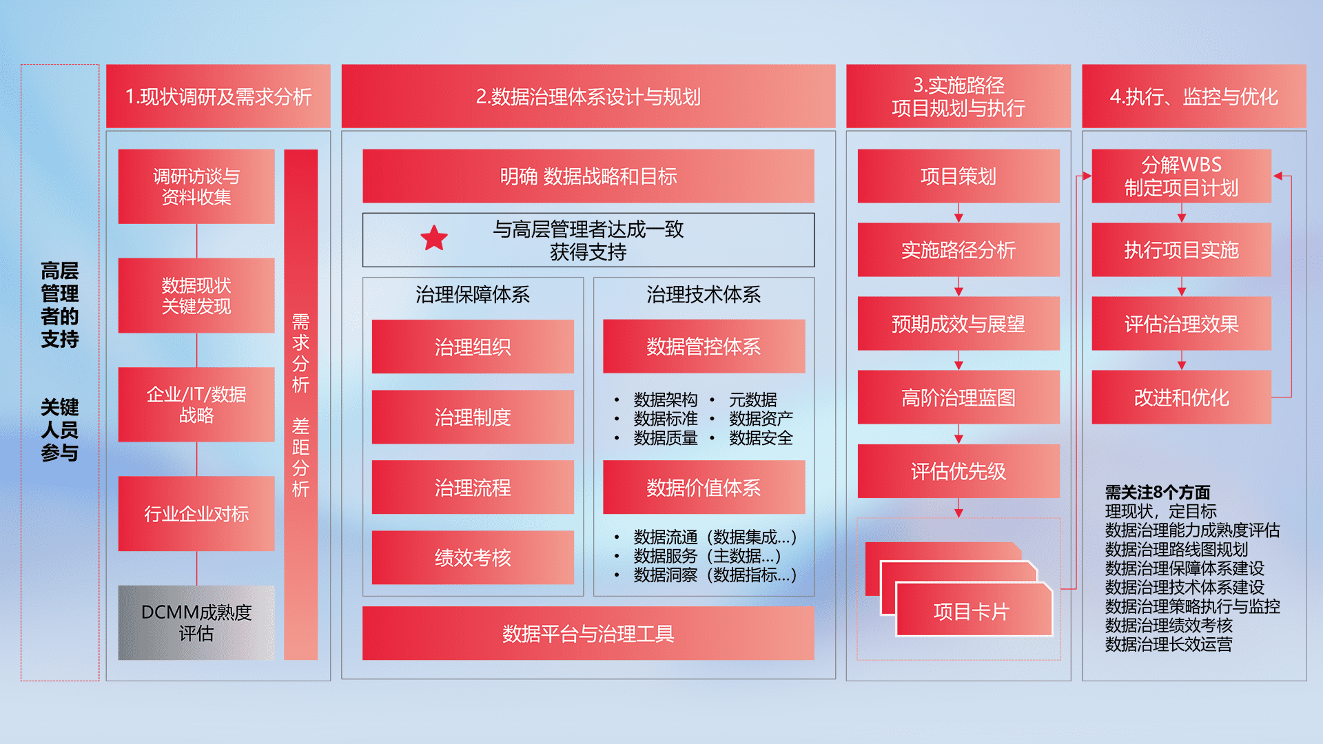 制定并执行统一的数据标准,,规范数据定义和格式,,,消除冗余和不一致性,,,实现跨部门和跨系统的数据一致性,,,为企业提供标准化的数据基础。。。。